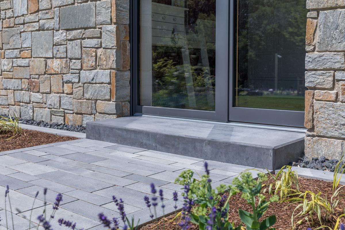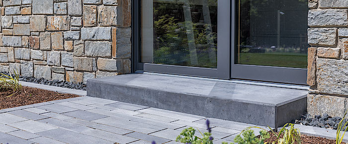 Podesty nadają się szczególnie do strefy wejściowej, ale także do architektury ogrodu. Uzupełniają każde wejście do domu czy na taras i stanowią dekoracyjną atrakcję. Można je szczególnie dobrze łączyć z betonowymi płytami i stopniami schodowymi. Robią wrażenie również jako pojedynczy element obszarów wejściowych.