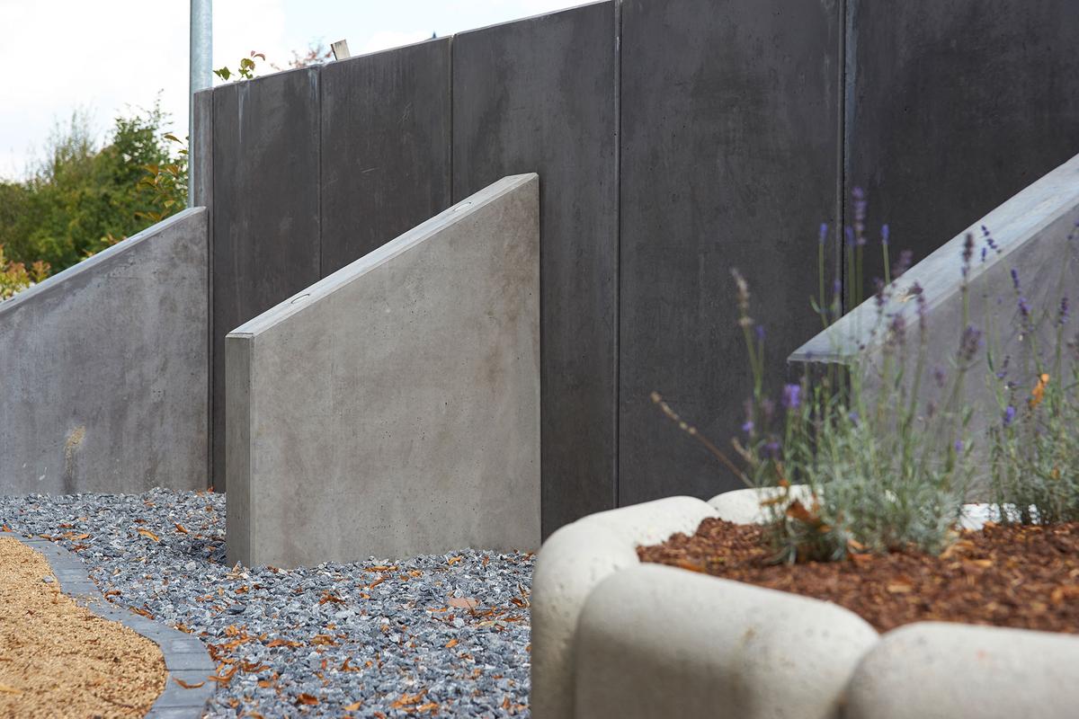 Ściany bez stopy Stele od Westerwelle posiadają swoją własną estetykę techniczną. Tworzą ciekawe efekty świetlne i cienie oraz nadają akcenty - w ogrodach, parkach i zielonych roślinach. Stele można optymalnie wykorzystywać jako ekrany betonowe bez całkowitego blokowania widoku. Produkujemy je w ścianach o grubości 10 cm, 12 cm, 15 cm, 20 cm oraz w wersjach: zewnętrzna strona licowa gładka, wewnętrzna strona licowa gładka lub obustronny beton licowy gładki.