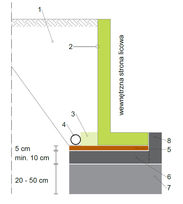 - Zbrojona podpora: konieczna przy elementach z wewnętrzną stroną licową! Zalecenie: połączyć konstrukcyjne z poz. 6
